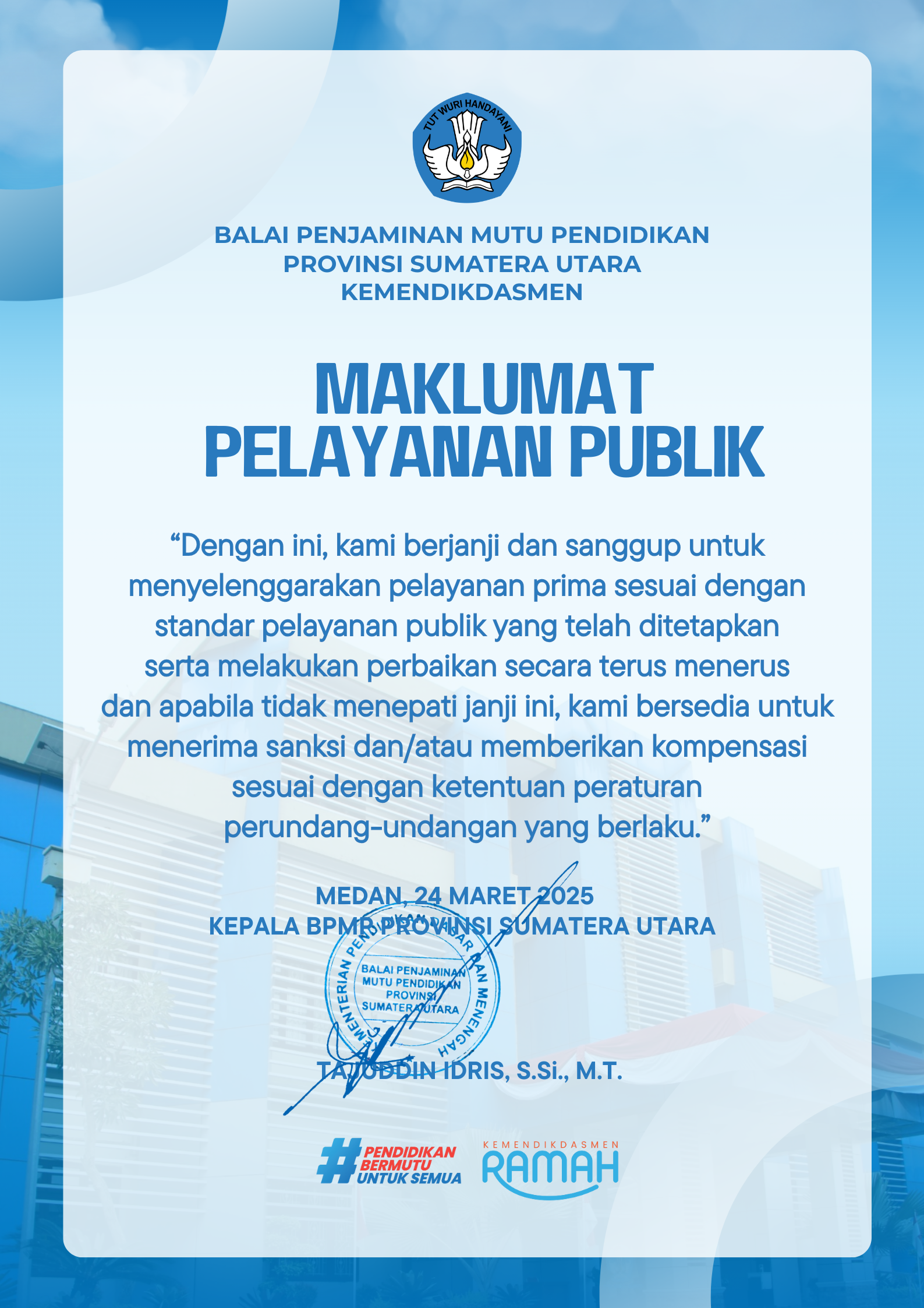 - Jenis Standar Pelayanan: Kemitraan Penjaminan Mutu Pendidikan