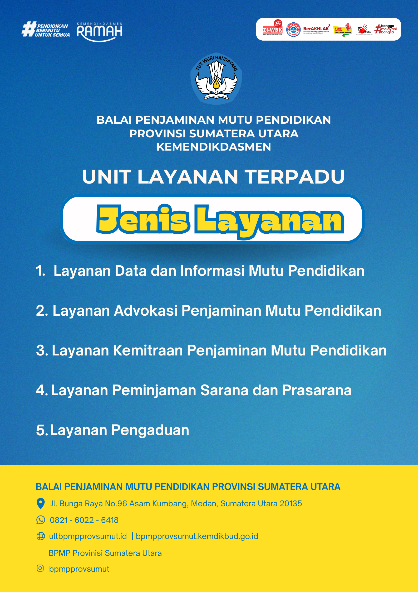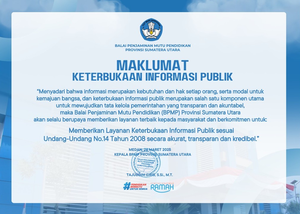 - Jenis Standar Pelayanan: Data dan Informasi Mutu Pendidikan